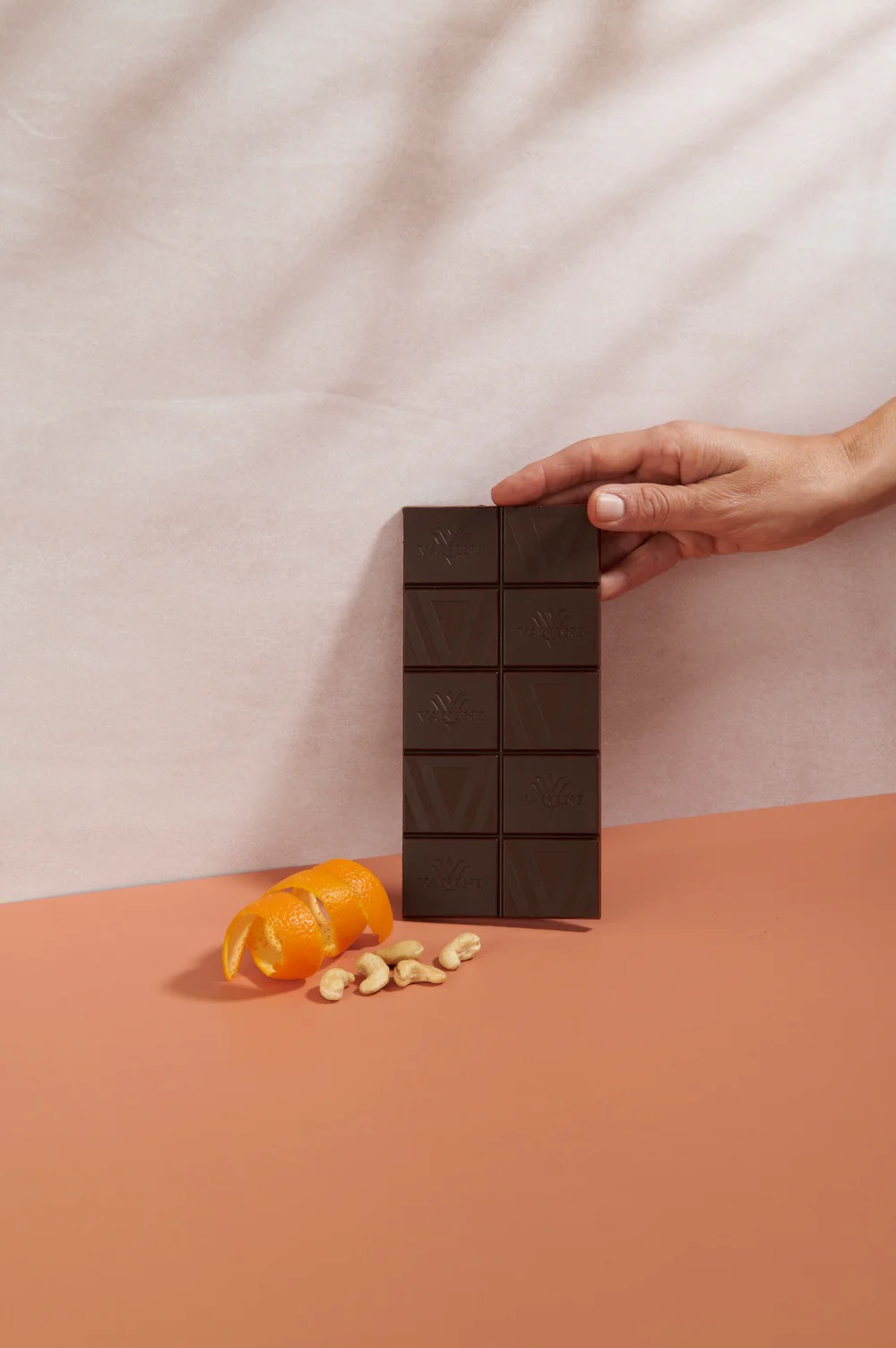 Vanini 62% tumeda šokolaaditahvel apelsinikoore ja India pähklitega pakub ideaalset maitse ja tekstuuri harmooniat! Röstitud India pähklite õrn krõmpsusus sobib suurepäraselt kokku vürtsikate tsitruseliste nootidega, mida tasakaalustab Peruu esmaklassilise kakao rikkalik sügavus.