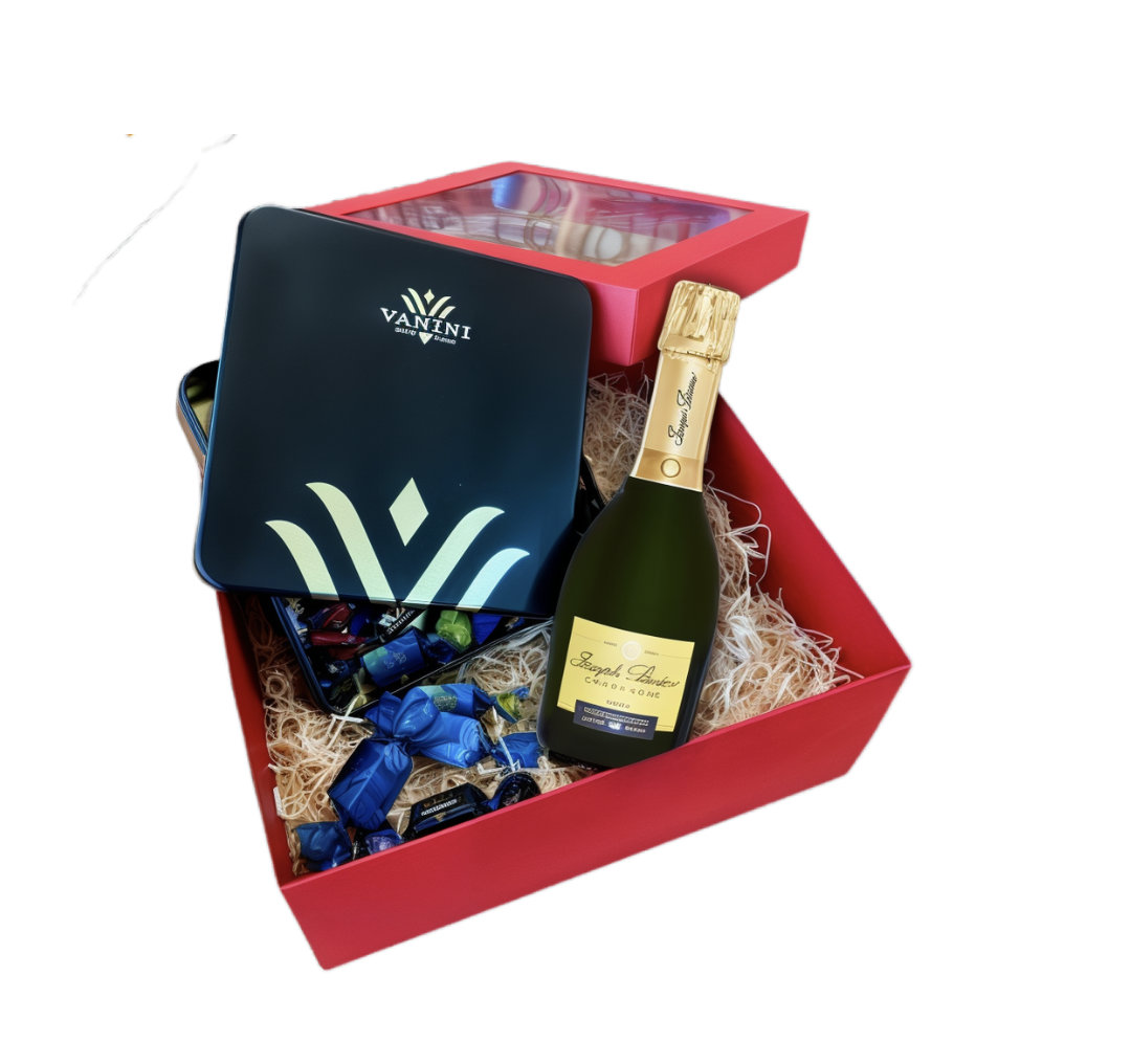 – Blue Rose pralineede valik stiilses metallkarbis 215 g;