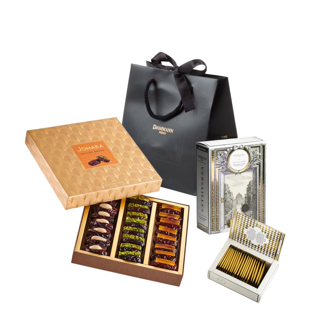 – Dammann Frères kinkekomplekt “Versailles” 20 teepakki (5 erineva maitsega teed, igat 4 siidikotikest)
