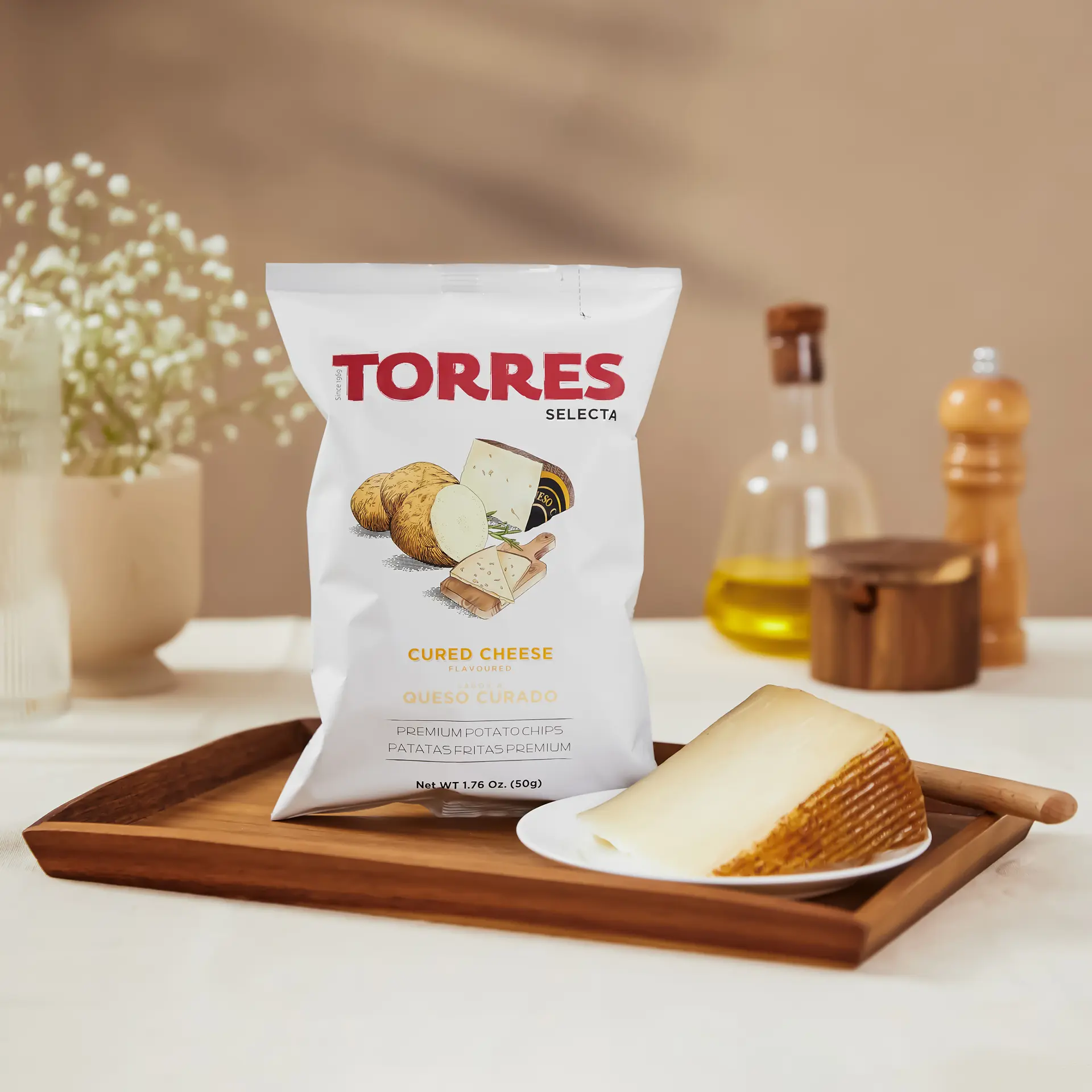 Laagerdatud juust on Hispaania toidukultuuri sümbol, mis ühendab traditsiooni, küpsuse ja oskusliku valmistamise. Pikem valmimisprotsess annab sellele sügava aroomi, piimased toonid ja erilise nüansirohkuse, mida on tabatud ka Torres Selecta krõpsudes. Tulemuseks on snäkk, mis on korraga elegantne ja jõuline, tuues iga hammustusega esile vahemereliku köögi autentsuse.