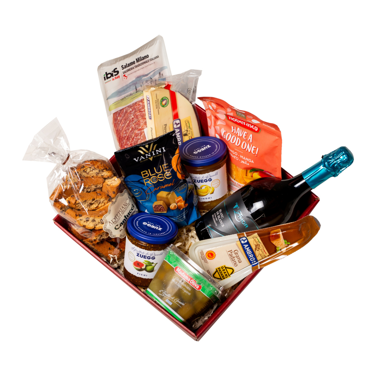 Kinkekomplekt “Igatsedes niiii väga Itaaliat” on tõeline maitserännak Apenniini poolsaarele. Hoolikalt valitud Itaalia juustud, viigimarjamoos ja viilutatud sink loovad koos oliividega ehtsa antipasti laua. Magususe ja elegantsi lisavad küpsised, Vanini šokolaadipralineed, Noberasco kuivatatud puuviljad ja moos, mille kõrvale avada pudel hõrku Itaalia vahuveini. See on kingitus, mis toob tõelise Itaalia meeleolu otse koju. Läbi aastate kindlasti üks populaarsemaid kinkekomplekte!