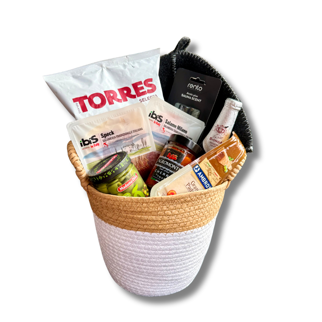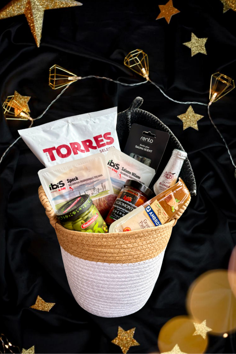 Komplekt on pakitud punutud hoiukorvi, mis on omakorda tsellofaanis ja sisaldab: