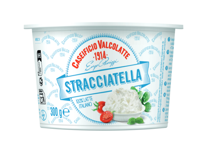 Stracciatella on värske Itaalia juust, mis on valmistatud kvaliteetsest lehmapiimast. Tegemist on burrata juustu sisuga – pehme ja kreemja seguga, mis koosneb mozzarella ribadest ja koorest. VALCOLATTE stracciatella on siidise, kreemja tekstuuriga ning õrna piimja maitsega.
