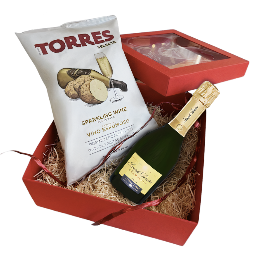 Kinkekomplekt “Vägevad vahutajad” on elegantne kingitus, mis ühendab endas üllatavad vahuveinimaitselised krõpsud ja väikse, ent ekslussiivse Joseph Perrier Cuvèe Royale Brut šampanja.