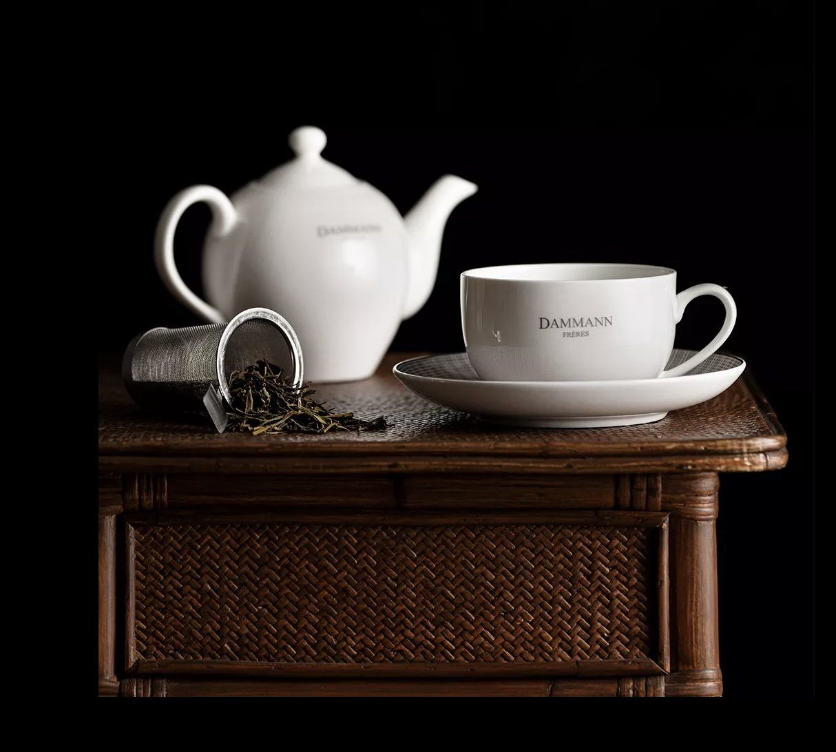 Klassikaline valgest portselanist teetass koos sobiva alusega, loodud Dammann Frères’i poolt. Elegantne ja ajatu disain sobib suurepäraselt lemmikteede nautimiseks.