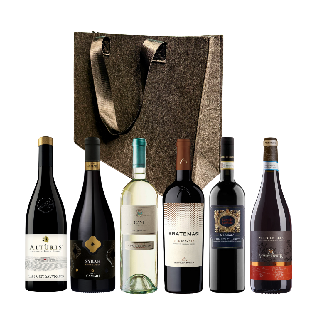 Veinid on pakitud elegantsesse tumehalli vildist kotti, mida kingisaaja saab hiljem ka muuks otstarbeks kasutusele võtta.